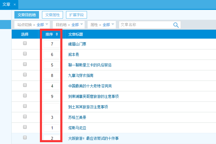 1、在未設置數字排序的前提下默認順序是最新更新的排列在最前面,顯示前9條攻略